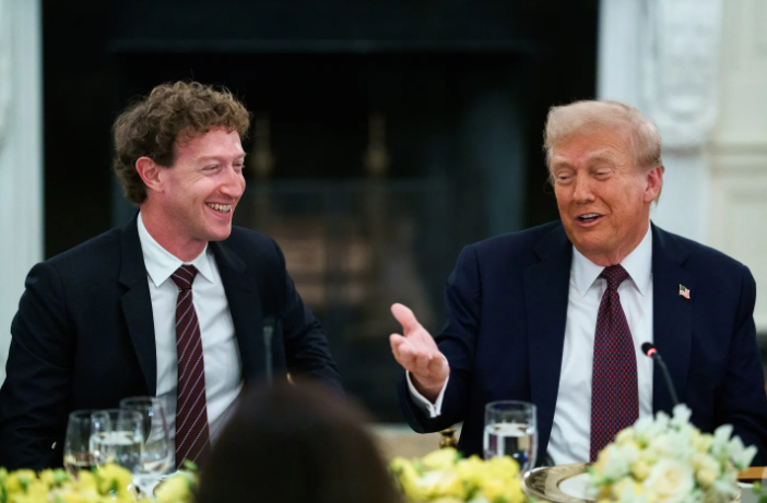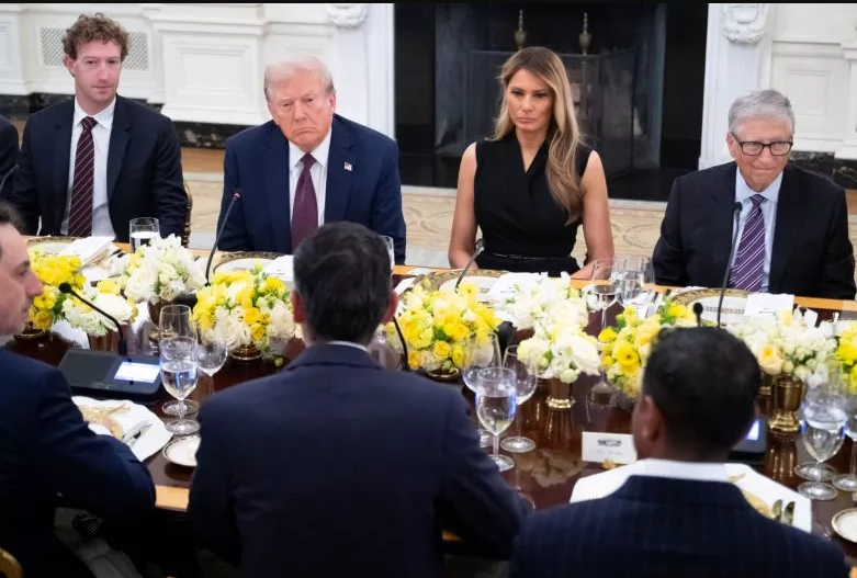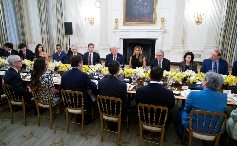 总统川普亲自坐镇,左右分列的是脸书创办人扎克伯格和第一夫人梅兰妮亚,再往旁边依次是比尔·盖茨、库克、皮查伊、布林、奥特曼、苏姿丰等重量级人物。这样的阵容,被媒体形容为“科技界的奥斯卡”。