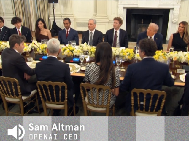 气氛最“热烈”的一段来自 OpenAI 的奥特曼。他直接对川普说:“感谢您是一位如此支持企业、支持创新的总统,这真是耳目一新的改变。” 这番话被解读为向川普二度入主白宫示好,也映照出科技业与政策之间的微妙关系。